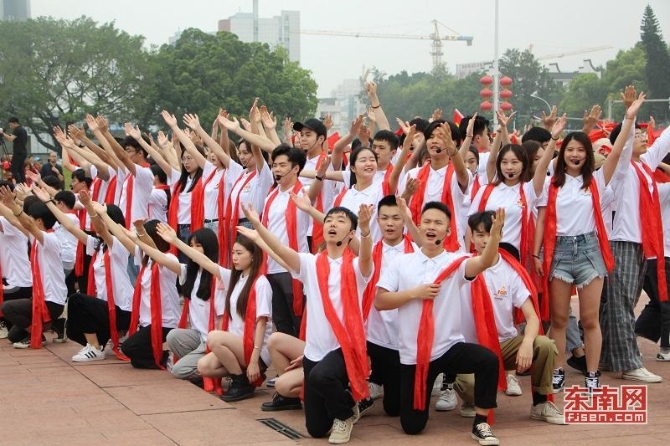 福建各界青年歌舞激情“快閃”紀(jì)念五四運(yùn)動(dòng)100周年。圖片來(lái)源:東南網(wǎng)
