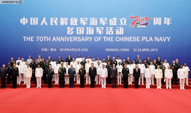 23日上午10時(shí)20分許,國(guó)家主席、中央軍委主席習(xí)近平在青島國(guó)際會(huì)議中心同應(yīng)邀前來(lái)參加活動(dòng)的多國(guó)海軍代表團(tuán)團(tuán)長(zhǎng)集體合影留念。(央視網(wǎng) 記者張偉 徐少兵 張建慶 步曉強(qiáng) 李斌 黃顯文 劉笑宇 攝影 李剛)