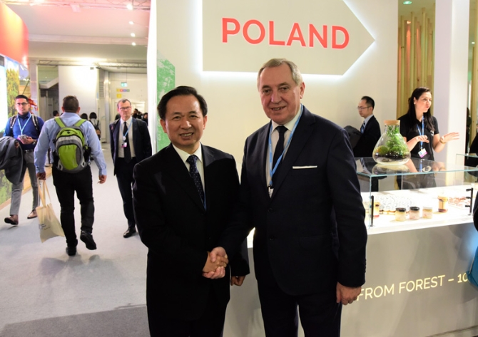 2018年12月2日-14日,聯(lián)合國氣候變化框架公約第24次締約方會議、《京都議定書》第14次締約方會議(CMP14)及《巴黎協(xié)定》第1次締約方會議第3階段會議在波蘭卡托維茲舉行,期間,12月3日舉行領(lǐng)導(dǎo)人峰會。生態(tài)環(huán)境部部長李干杰出席峰會并與有關(guān)各方開展密集性磋商,積極推動卡托維茲大會取得成功。(圖片來源:生態(tài)環(huán)境部)