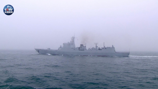 人民海軍32艘戰(zhàn)艦威武列陣,戰(zhàn)機振翅欲飛,遠涉重洋前來參加慶典活動的13國海軍18艘艦艇整齊編隊。