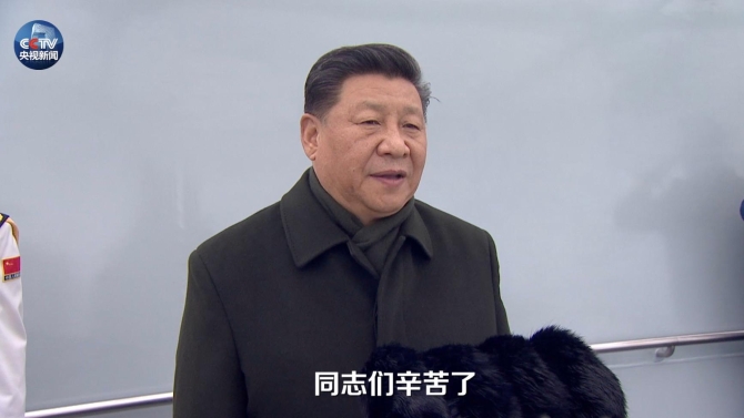 12時40分許,習(xí)近平在青島奧帆中心碼頭檢閱中國人民解放軍海軍儀仗隊后,登上“西寧”號檢閱艦,抵達指定海域。14時30分許,習(xí)近平登上檢閱臺,下達檢閱開始命令。