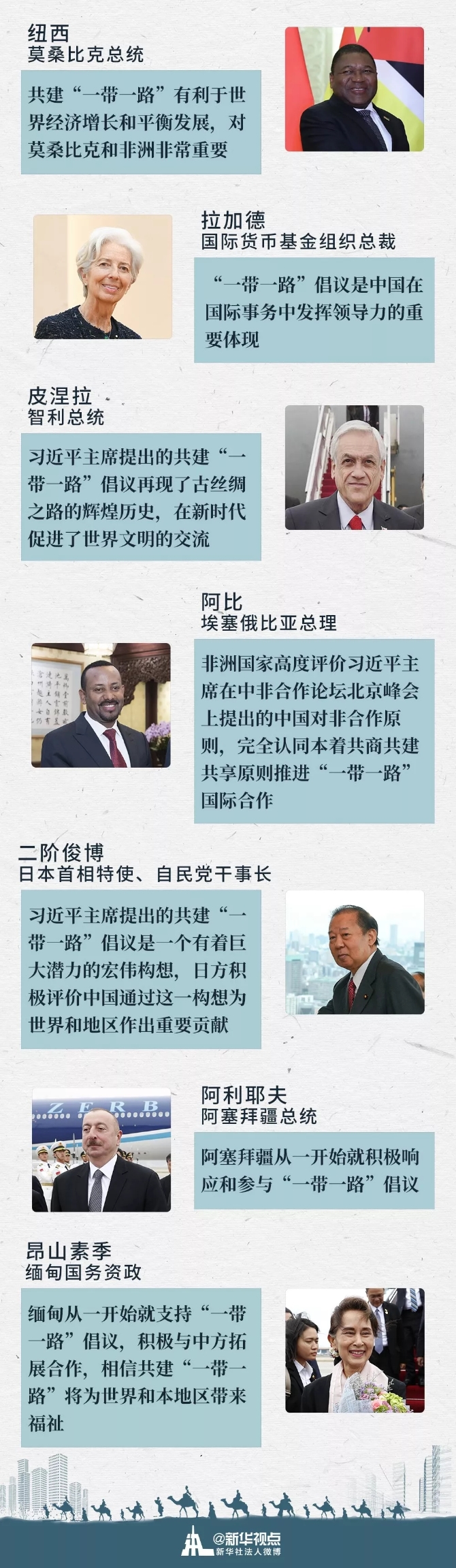 “源自中國、屬于世界”。越來越多的國家也對此表達(dá)了認(rèn)同。今天上午開始,習(xí)主席密集地會(huì)見了7位前來參會(huì)的外國政要。會(huì)見中,外賓們這樣稱贊“一帶一路”對世界的貢獻(xiàn)——