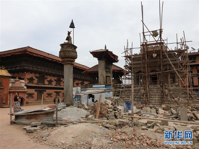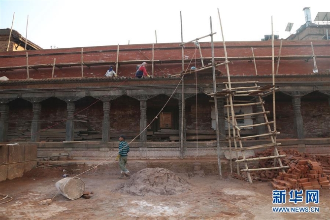 ?這是4月25日在尼泊爾加德滿(mǎn)都拍攝的一處重建中的建筑。新華社發(fā) 蘇尼爾·夏爾馬攝