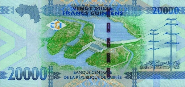 ▲幾內(nèi)亞20000法郎:凱樂塔水利樞紐