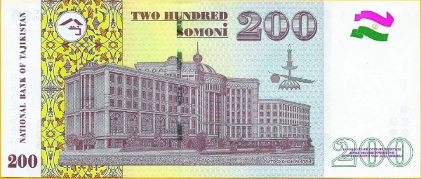 ▲塔吉克斯坦200索莫尼:塔吉克斯坦國家圖書館