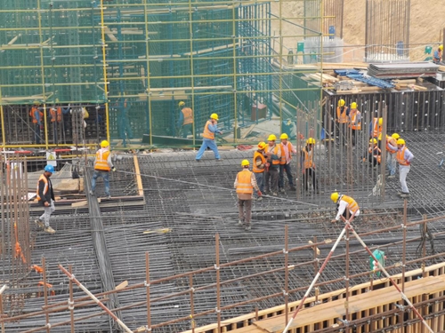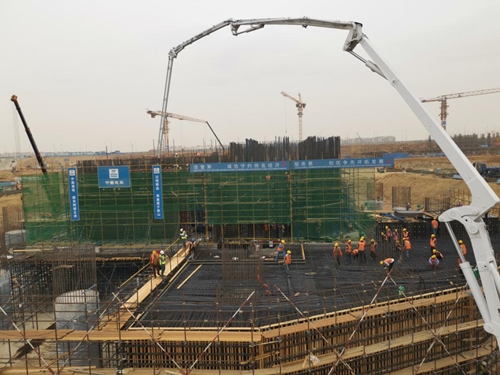 CBD項目中第一高樓標(biāo)志塔項目2018年6月動工,當(dāng)年12月完成基坑混凝土換填。2019年2月25日,該項目底板混凝土開盤澆筑,38小時完成18500立直徑約70米、厚大5米的多邊形鋼筋混凝土底板澆筑,創(chuàng)下非洲建筑工程最大基礎(chǔ)底板澆筑紀(jì)錄。