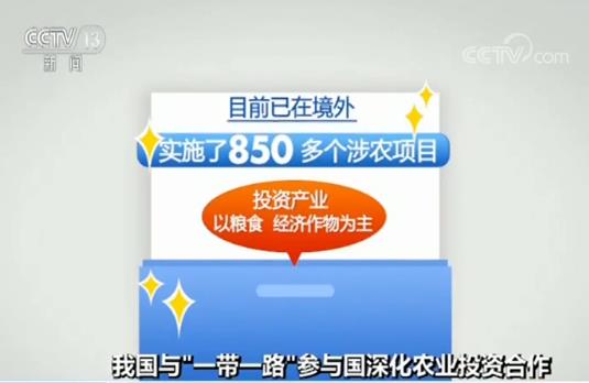 農(nóng)業(yè)農(nóng)村部今天(27日)發(fā)布,我國與“一帶一路”參與國的農(nóng)業(yè)投資合作深入開展,目前我國在“一帶一路”參與國開展的農(nóng)業(yè)投資合作項(xiàng)目超過650個,投資存量達(dá)到94.4億美元。