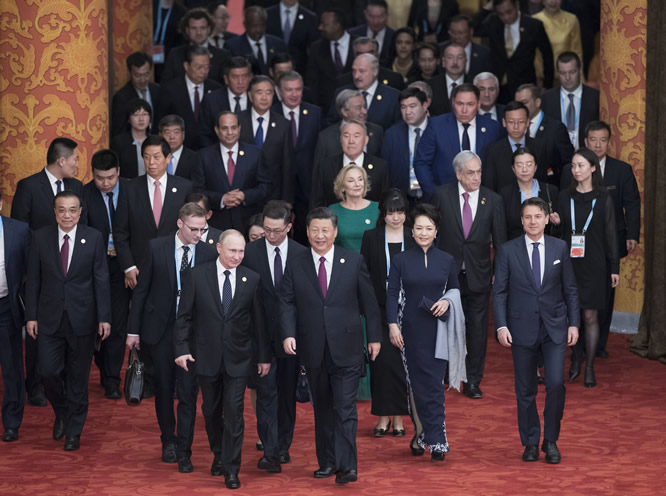 國(guó)家主席習(xí)近平和夫人彭麗媛26日在人民大會(huì)堂舉行宴會(huì),歡迎出席第二屆“一帶一路”國(guó)際合作高峰論壇的外方領(lǐng)導(dǎo)人夫婦及嘉賓。李克強(qiáng)、栗戰(zhàn)書(shū)、汪洋、王滬寧、趙樂(lè)際、韓正、王岐山出席。