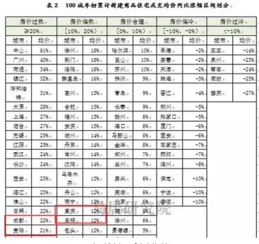 昆明的房?jī)r(jià)漲幅雖然沒有中山驚人,但漲幅也達(dá)到了12%,在100個(gè)城市中漲幅排在第40名,按照易居研究院的劃分,屬于“房?jī)r(jià)偏熱”區(qū)間。西南其他三個(gè)城市中,今年一季度成都和貴陽(yáng)的房?jī)r(jià)漲幅都超過了20%,屬于市場(chǎng)過熱城市;重慶的房?jī)r(jià)漲幅和昆明一樣漲了12%,屬于市場(chǎng)偏熱城市。