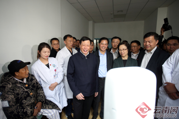 上海市代表團來到育兒科、心血管病防治中心等科室察看,在遠程醫(yī)療中心看到患者正在接受遠在上海的專家會診,指出要完善遠程診斷使用機制,及時為有需要的貧困地區(qū)群眾服務(wù)。
