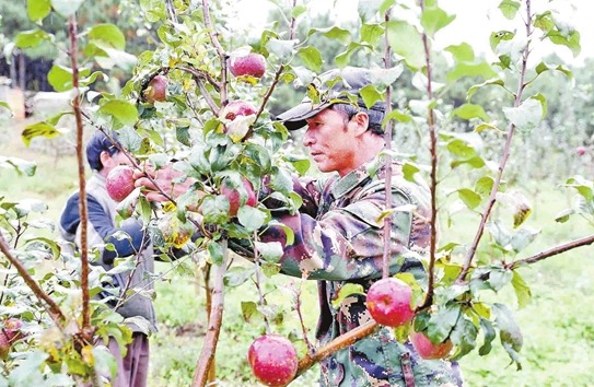 石屏縣龍武鎮(zhèn)是滬滇對口幫扶的地區(qū)之一,2年來,上海投入幫扶石屏縣龍武鎮(zhèn)資金達1857.5萬元。圖為龍武鎮(zhèn)法烏村的蘋果種植基地。記者李秋明/攝