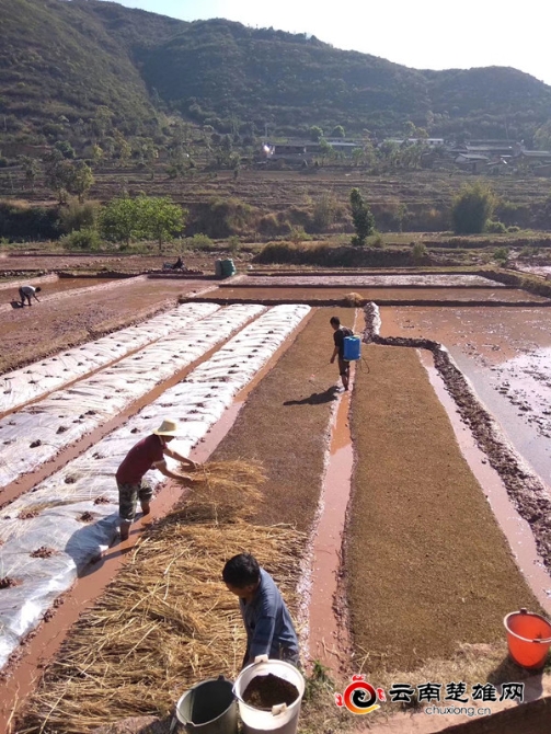 圖為大莊鎮(zhèn)普巖村委會(huì)大羅塊村民小組群眾在育水稻秧。趙麗華/攝