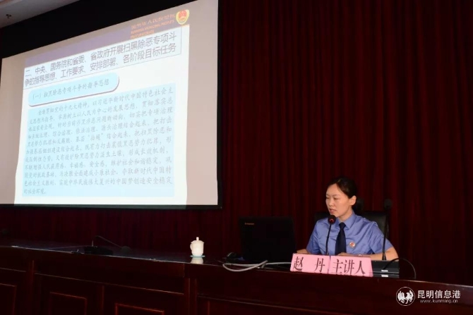 昆明市掃黑除惡專項斗爭主題宣講團(tuán)成員、市檢察院偵查監(jiān)督處干警趙丹作“開展掃黑除惡 建設(shè)善美云南”主題宣講。趙丹圍繞習(xí)近平總書記關(guān)于開展掃黑除惡專項斗爭的重要指示精神,掃黑除惡專項斗爭的背景、意義、指導(dǎo)思想,省市各級黨委政府開展掃黑除惡專項斗爭的安排部署、工作要求、各階段目標(biāo)任務(wù)等內(nèi)容等進(jìn)行宣講,通過以案剖析、以案宣講,通俗易懂地講解了廣大干部群眾應(yīng)當(dāng)熟知的掃黑除惡相關(guān)政策、法律法規(guī)知識等。
