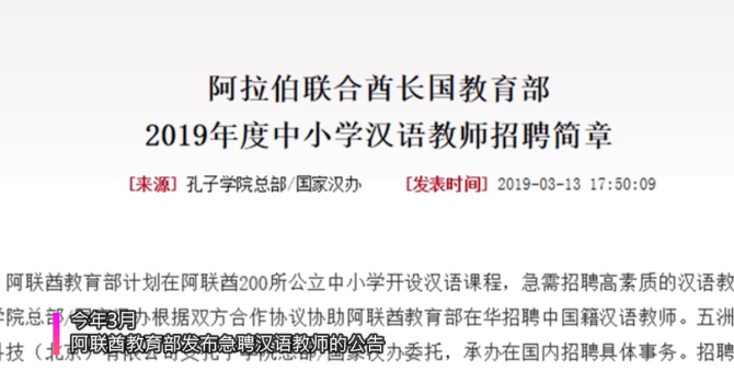 2019年3月13日,阿聯(lián)酋教育部發(fā)布急聘漢語教師的公告,中國孔子學(xué)院總部/國家漢辦根據(jù)雙方合作協(xié)議,協(xié)助阿方在華招聘中國籍漢語教師,月薪約合3萬元人民幣。阿聯(lián)酋作為第一個(gè)與中國建立戰(zhàn)略伙伴關(guān)系的海灣國家,也是最早響應(yīng)中國“一帶一路”倡議的國家之一,這則招聘信息的公布讓學(xué)習(xí)對外漢語的同學(xué)們異常振奮。