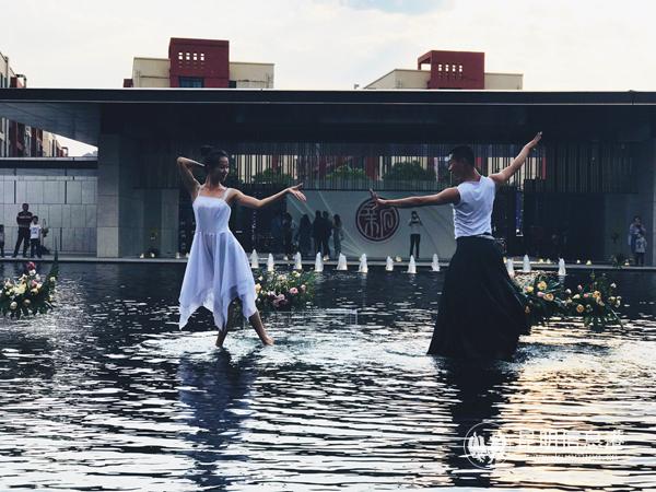 體驗(yàn)中心內(nèi)舞者們在鏡面水池起舞