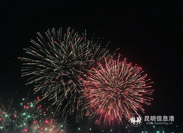 盛典最后,萬眾期待的煙火表演沸騰全場,五彩絢爛的煙火如銀河萬里、點(diǎn)亮昆明全城的夜空,如七彩瀑布傾瀉而下、氣勢恢宏,將整場晚會(huì)推向高潮。
