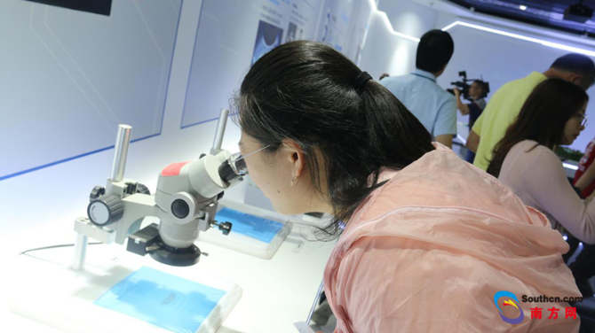 采訪團(tuán)一行在三安光電體驗(yàn)最新信息技術(shù)產(chǎn)品。記者 梁惠敏 攝