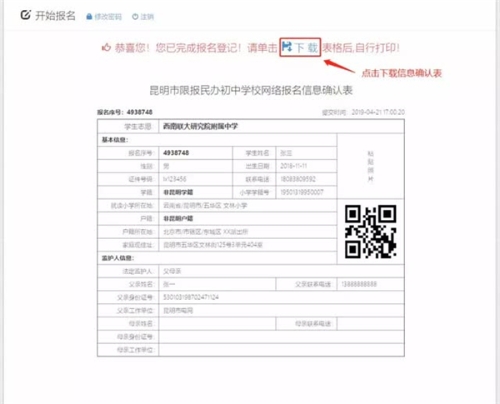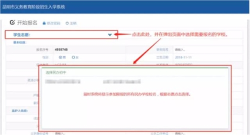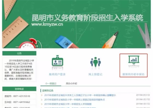 2019年昆明市限報民辦初中網(wǎng)上報名