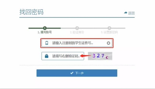 如發(fā)生忘記登錄密碼的情況,家長可以在登錄頁面中點擊“忘記密碼”,進入找回密碼頁面。如下圖所示: