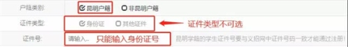 二是選擇報名學(xué)生的戶籍類別,戶籍類別分為:昆明戶籍、非昆明戶籍。報名學(xué)生戶籍屬于昆明市轄區(qū)內(nèi)的,選擇昆明戶籍,并填寫身份證號。如下圖所示: