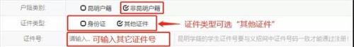 報名學(xué)生戶籍不屬于昆明市轄區(qū)內(nèi)的,選擇非昆明戶籍,并填寫身份證號;如報名學(xué)生身份為外籍或港澳臺的,選擇非昆明戶籍后,勾選“其他證件”,即可填寫其它證件號。如下圖所示: