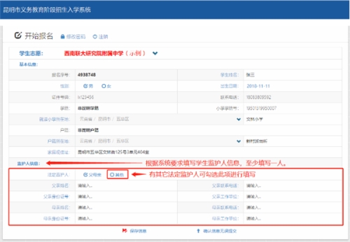 3)填寫監(jiān)護人信息