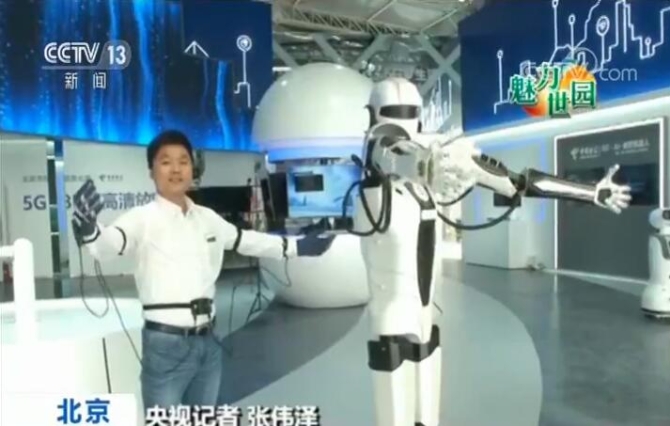 央視記者 張偉澤:大家可以看到,現在機器人正在跟隨著我做動作。它很靈敏,它最大的特點就是有高度的這種同步性,那么這正是5G大帶寬帶來這樣一個效果。