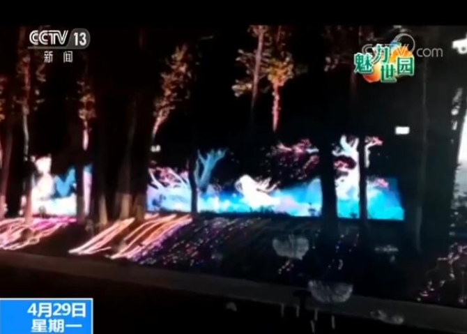 而園區(qū)的另外一角,工作人員用樹木打造了一個“光影森林”展區(qū),通過聲光電和技術營造出奇幻的光影效果,有白天和夜間兩種不同體驗,尤其是夜間光影打造的“神獸仙靈”與真實的樹林融為一體,呈現出奇幻景象,為游客們呈現了既充滿綠色生態(tài)又富有科技創(chuàng)新的視覺體驗。