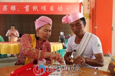 近日,瑞麗市委宣傳部、市文化和旅游局等部門在弄煥村民小組“新時代文明實踐站”組織開展剪紙、果雕等非物質(zhì)文化傳承培訓。