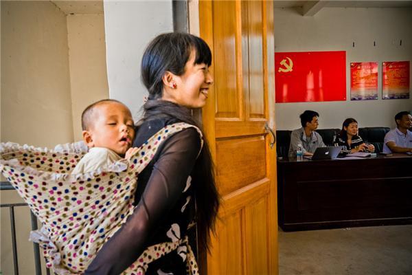 “多多農(nóng)園”團(tuán)隊(duì)向叢崗村村委會、商家、農(nóng)戶公布未來三年的計(jì)劃,一位年輕媽媽站在門外旁聽。