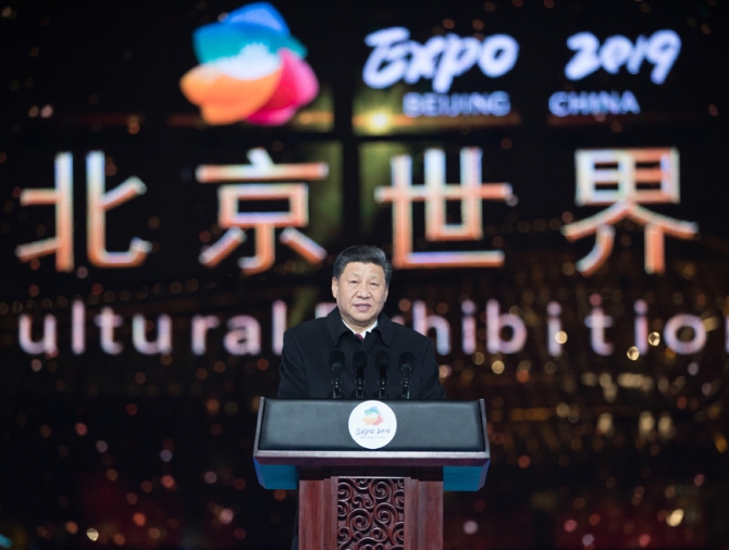 ?習(xí)近平宣布,2019年中國北京世界園藝博覽會開幕。