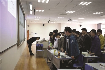 對于上課禮,陳建平是這樣解釋的,“一是體現(xiàn)師生的相互尊重,同學(xué)起立,老師鞠躬,營造的是師生平等的課堂氛圍、溫文爾雅的校園文化。二是善意提醒同學(xué),讓他們盡快進(jìn)入上課的角色,將‘精、氣、神’調(diào)整到最佳狀態(tài)。三是敦促教師,要敬畏課堂,排除雜念,全身心投入教學(xué)。”