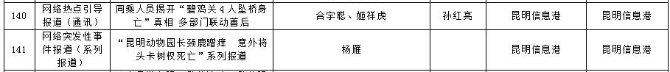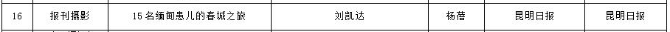 4月30日,第35屆云南新聞獎(jiǎng)評(píng)選結(jié)果公示,昆明報(bào)業(yè)傳媒集團(tuán)28件作品獲省級(jí)新聞獎(jiǎng),其中云南省新聞?wù)撐莫?jiǎng)一等獎(jiǎng)1件、二等獎(jiǎng)1件;云南新聞獎(jiǎng)一等獎(jiǎng)6件、二等獎(jiǎng)9件、三等獎(jiǎng)11件。