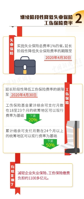 降費(fèi)率方面,一是降低城鎮(zhèn)職工基本養(yǎng)老保險(xiǎn)單位繳費(fèi)比例,高于16%的省份,可降至16%。二是繼續(xù)階段性降低失業(yè)保險(xiǎn)和工傷保險(xiǎn)費(fèi)率,現(xiàn)行的階段性降費(fèi)率政策到期后再延長一年至2020年4月30日。