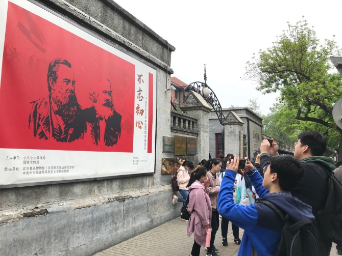 △這是4月27日青年觀眾參觀北京新文化運(yùn)動(dòng)紀(jì)念館。該紀(jì)念館館址即北大紅樓。當(dāng)年,北大學(xué)生就是從北大紅樓出發(fā)前往天安門。(央視記者拍攝)