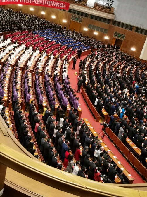 △當(dāng)天的大會(huì)在人民大會(huì)堂萬人大禮堂舉行。(央視記者周志國(guó)拍攝)