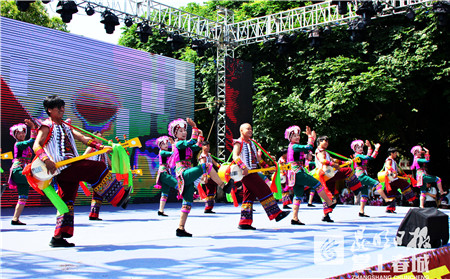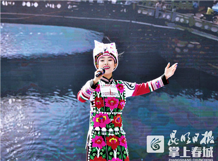 在開幕式上的文藝演出中,來自石林本地的非遺傳承人、文藝團隊和民間文藝愛好者以及受邀的石林周邊“阿詩瑪文化覆蓋區(qū)”丘北縣、彌勒市的文藝團隊,用演唱、朗誦、歌舞等形式對阿詩瑪文化進行傳承展演。敘事長詩《阿詩瑪》片斷演唱,經(jīng)典誦讀《美麗阿詩瑪》,組合唱《曼昂阿詩瑪》、《回到阿著底》,原生態(tài)歌舞《阿詩瑪故鄉(xiāng)》、《洗麻歌》、《阿細跳月醉彌勒》、《歡迎您到石林來》……一首首、一支支極富民族特色的文藝演出吸引著觀眾的眼球,讓人嘆為觀止,笑聲掌聲此起彼伏。極富感染力的民族歌舞,把演出現(xiàn)場變成了歌的海洋、舞的世界。