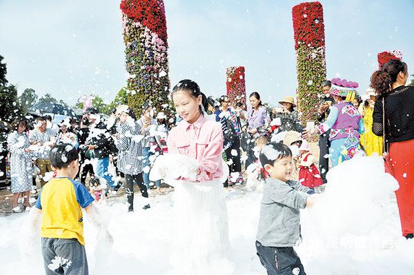 小朋友們在世博園玩泡泡游戲。記者劉凱達/攝