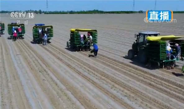 我們現(xiàn)在看到的,是新疆番茄種植基地之一的瑪納斯縣蘭州灣鎮(zhèn)。眼下正是這里番茄移栽的最佳時(shí)節(jié),3萬畝的番茄種植工作已在緊張進(jìn)行。