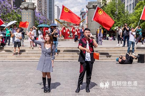昆明信息港訊 5月4日,由共青團(tuán)云南省委、共青團(tuán)昆明市委主辦的“青春心向黨 建功新時(shí)代”紀(jì)念五四運(yùn)動(dòng)一百周年主題快閃活動(dòng)南屏街場(chǎng)在南屏步行街廣場(chǎng)拉開(kāi)帷幕。共青團(tuán)云南省委副書(shū)記趙攀峰,共青團(tuán)昆明市委書(shū)記郝國(guó)棟全程參與。