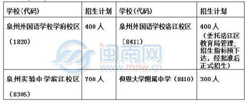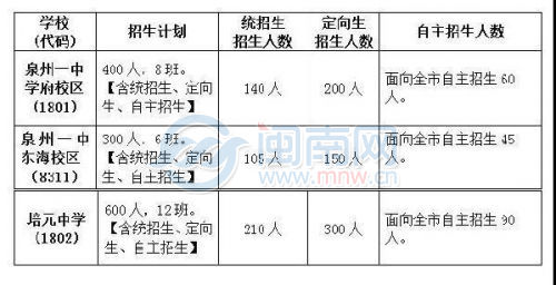 三、城東中學(xué)和泉州九中本來有保送生計劃,無此計劃后,均按面向泉州市區(qū)自主招生安排;