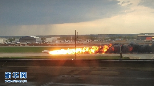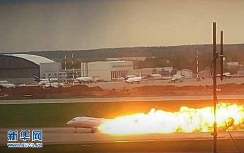 5月5日,一架客機在俄羅斯首都莫斯科謝列梅捷沃機場迫降。新華社發(fā)(謝爾蓋攝)