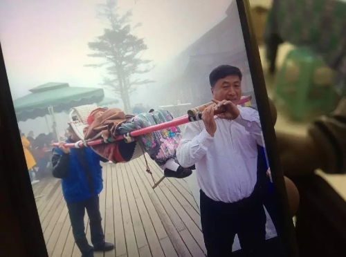 徐勇從雷洞坪停車場抬著母親,