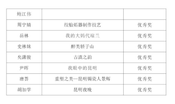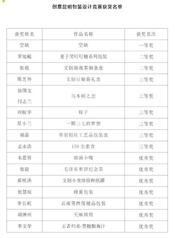 為慶祝中華人民共和國成立七十周年,激發(fā)昆明地區(qū)職工學(xué)技術(shù)、練技能、做貢獻(xiàn)的熱情,廣泛挖掘文化創(chuàng)意領(lǐng)域中的新生代設(shè)計(jì)師原創(chuàng)力量,引導(dǎo)文化創(chuàng)意設(shè)計(jì)緊貼生活,將傳統(tǒng)文化與現(xiàn)代科技,藝術(shù)價(jià)值與實(shí)用功能,創(chuàng)意設(shè)計(jì)與產(chǎn)業(yè)需求相結(jié)合,昆明市委宣傳部、昆明市總工會(huì)、昆明市人力資源和社會(huì)保障局共同舉辦了2019第二屆金茶花文化創(chuàng)意設(shè)計(jì)大賽之“當(dāng)好主人翁、建功新時(shí)代”為主題的昆明地區(qū)職工文化創(chuàng)意職業(yè)技能競賽。經(jīng)過宣傳推廣、報(bào)名初賽、現(xiàn)場展示、決賽評(píng)審等環(huán)節(jié),產(chǎn)生了五大競賽領(lǐng)域的各個(gè)獎(jiǎng)項(xiàng),現(xiàn)將獲獎(jiǎng)名單公布如下: