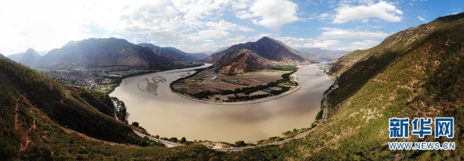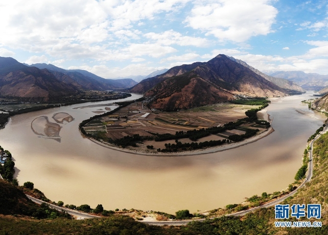 “長江第一灣”位于云南省麗江市石鼓鎮(zhèn)與香格里拉縣沙松碧村之間。長江從青藏高原奔騰而下,從四川甘孜州巴塘縣進(jìn)入云南,與瀾滄江、怒江一起在橫斷山脈的高山深谷中穿行形成了“三江并流”的壯麗景觀。到了石鼓鎮(zhèn)和沙松碧村之間,突然來了個100多度的“急轉(zhuǎn)彎”,形成罕見的“V”字形大彎,人們稱這天下奇觀為“長江第一灣”。新華網(wǎng)發(fā)(王俞/攝)