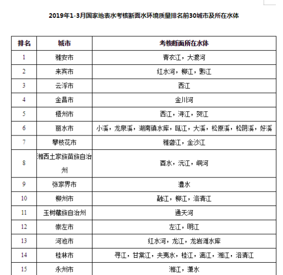 據(jù)了解,這是國家生態(tài)環(huán)境部首次公布地級(jí)及以上城市國家地表水考核斷面水環(huán)境質(zhì)量排名。在今年一季度國家地表水環(huán)境質(zhì)量前30名中,湖南占5個(gè)。記者在《2019年1-3月國家地表水考核斷面水環(huán)境質(zhì)量排名前30城市及所在水體》榜單中看到,常德市(沅江、澧水、洞庭湖)位列第24名。