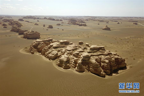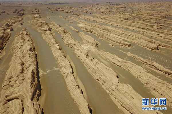 這是5月8日無(wú)人機(jī)拍攝的敦煌雅丹國(guó)家地質(zhì)公園雨后景色。近日,甘肅敦煌迎來(lái)降雨天氣,雨后的敦煌雅丹國(guó)家地質(zhì)公園顯得更加雄壯美麗。新華社記者范培珅/攝