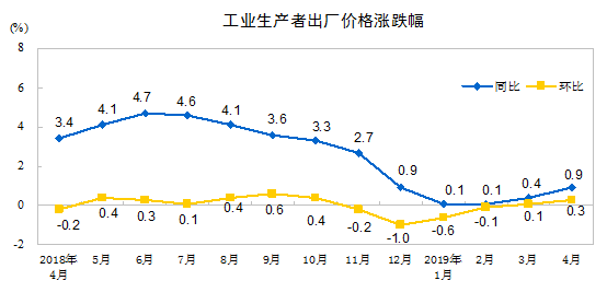 2019年4月工業(yè)生產(chǎn)者價(jià)格主要數(shù)據(jù)