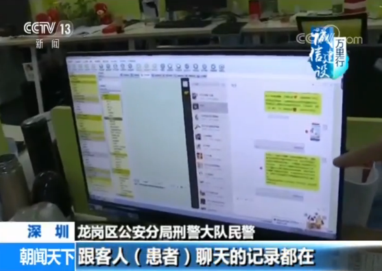深圳龍崗區(qū)公安分局刑警大隊民警:這里有專業(yè)的軟件,是專門來跟別人(患者)溝通的,那么QQ(微信)上面每一種跟客人(患者)聊天的記錄都在,然后,話術在旁邊都有。