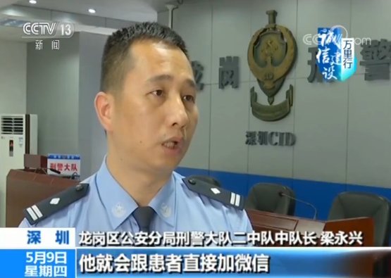 深圳龍崗區(qū)公安分局刑警大隊二中隊中隊長 梁永興:那么冒充醫(yī)生以及醫(yī)生助理的這些業(yè)務員,就會跟患者聊天,聯系詢問病情,然后介紹他們醫(yī)院的資質。等跟患者聊熟了之后,他就會跟患者直接加微信、加qq進行聊天,然后就相當于一對一的跟蹤治療這種模式。